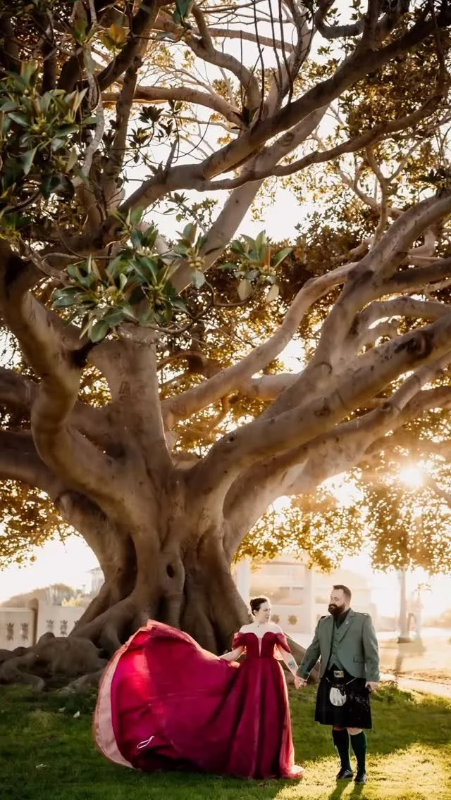 π Red dress. Winter air. Scottish flair. Love wins. βοΈ